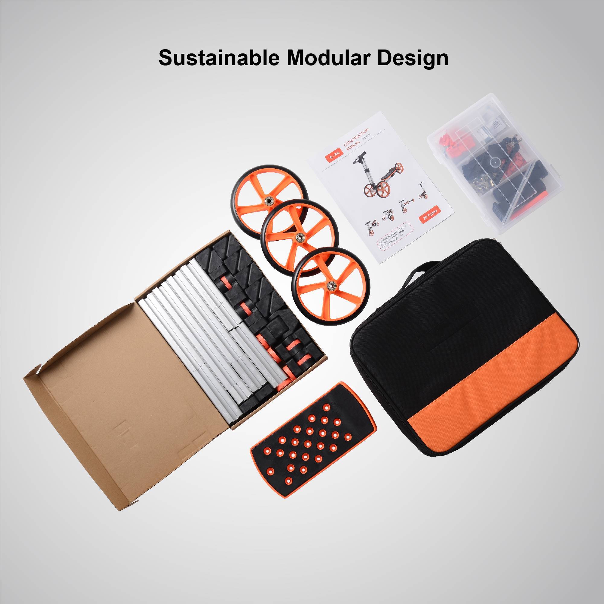 S-kit is the most basic one in our kit series, suitable for children aged 1-4. Adopt simple modular design, so more creative new combinations can be realized, at least 20 different vehicles, including stools, two-wheel balance vehicles, three-wheel balance vehicles, two-wheel scooters, three-wheel scooters.